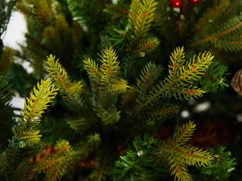 - Upgrade Material: All branches and tips are made of premium PVC and PE mix material, while the tree trunk and stand are made of sturdy metal. Bendable “leaves” will not fall off, which maintains a clean floor after Christmas.